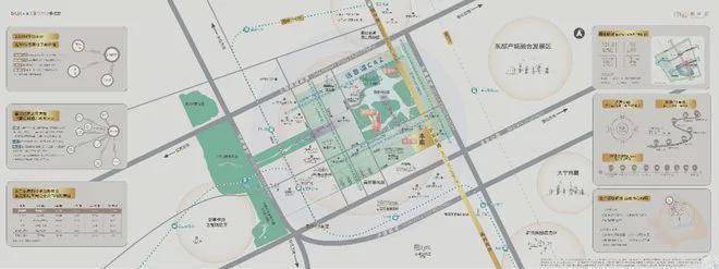 “九曲映翠”弧线洄逛动线,串联起“艺术前场、迎宾水景、邻里客堂、共享客堂、四序识园、无界社交剧场、儿童大象乐土、流水林泉、元气调换空间”九大景观效用空间,营制移步异景的归家享用与缤纷生计场景。